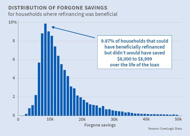 Savings can be even greater with a bigger difference in interest rates. For example, NBER estimated that if someone refinanced from a 6.5% interest rate to a 4.5% interest rate, they’d save more than $80,000 on average. If they refinanced to 2020 historic lows of 3.35%, they’d save about $130,000.